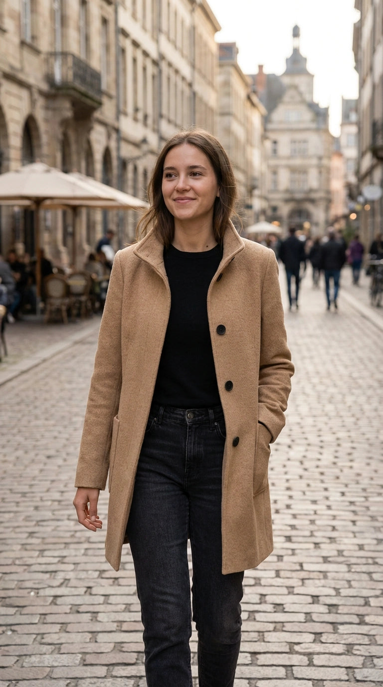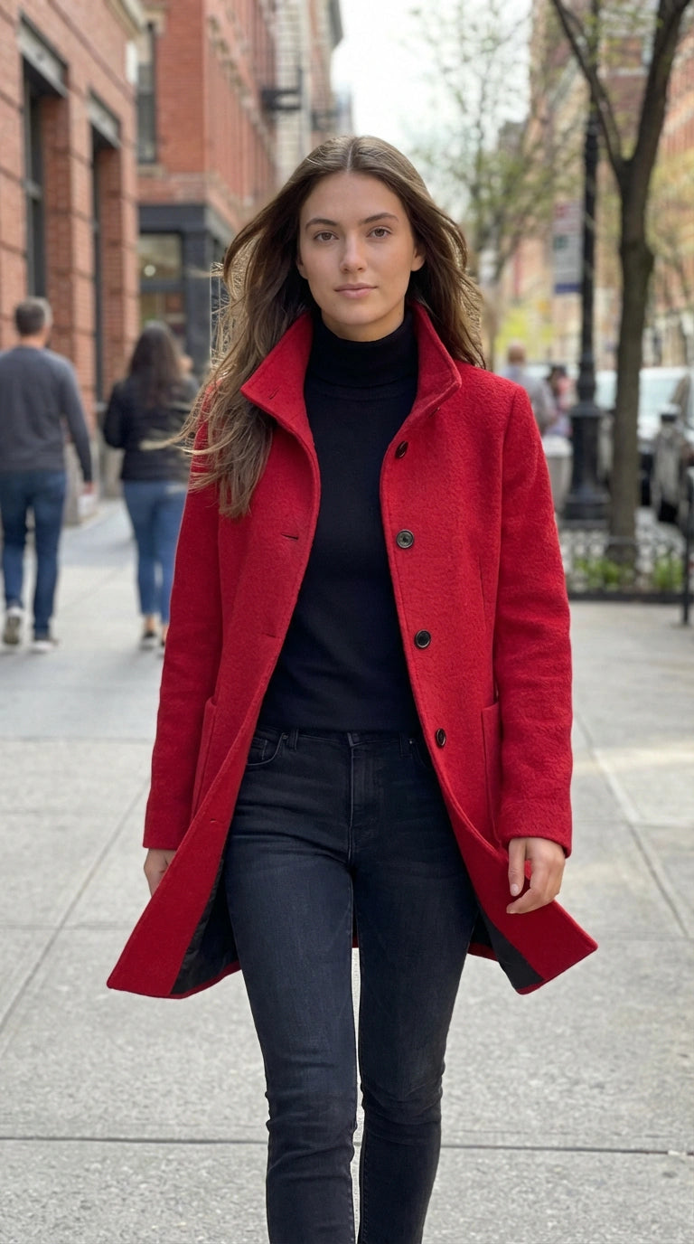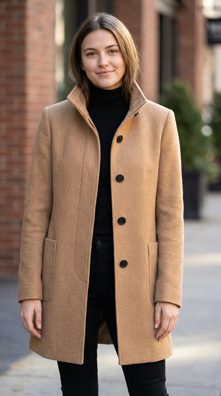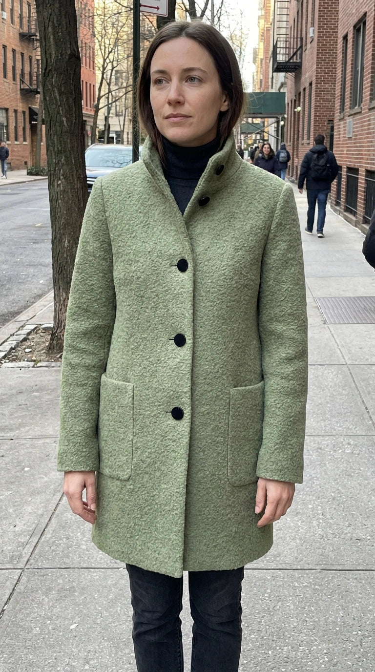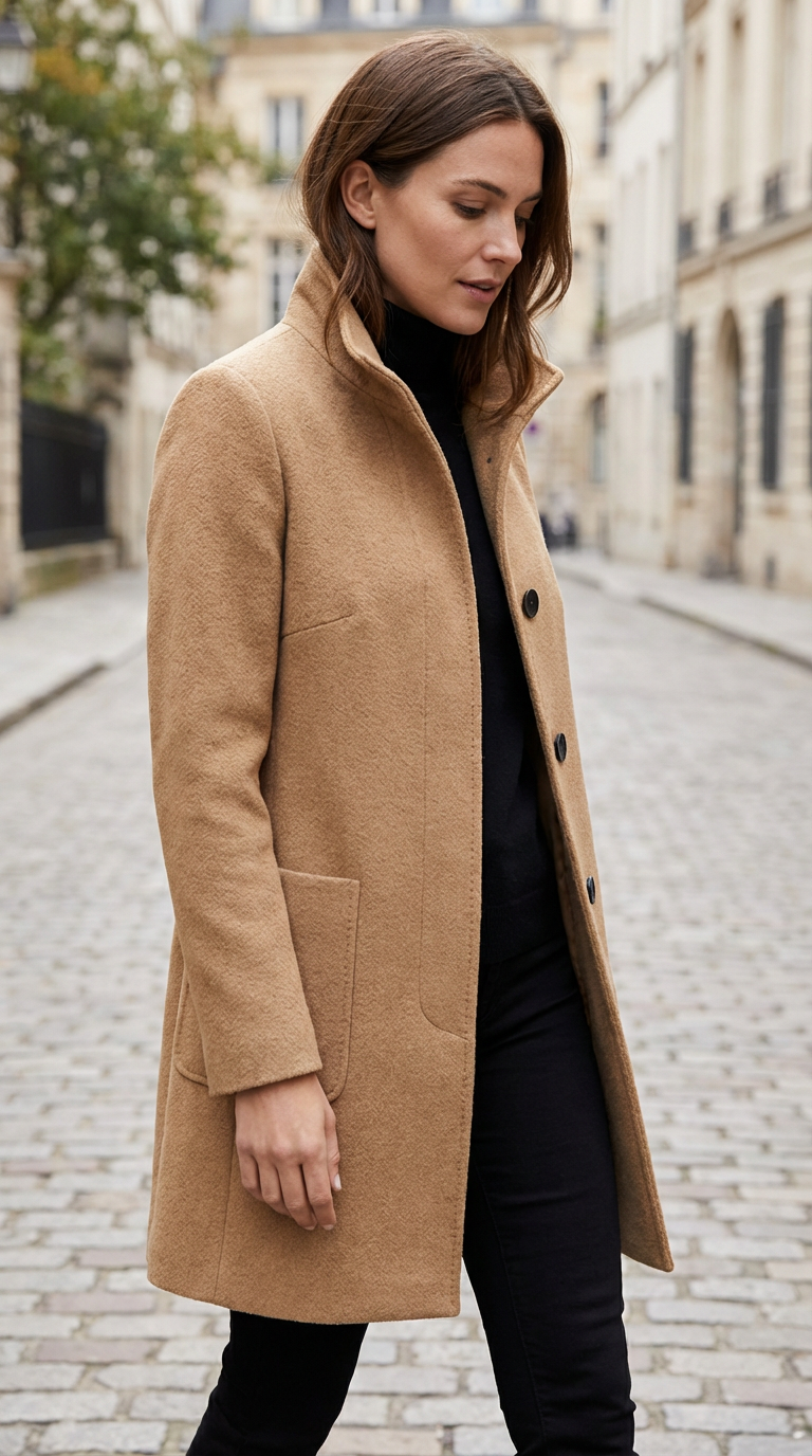 Navržený tak, aby stylově zvládl nejchladnější měsíce, tento dámský kabát spojuje pohodlí a eleganci v jednom kousku. Směs vlněné látky nabízí příjemný pocit tepla při zachování lehké struktury, ideální pro každodenní nošení. Moderní silueta zvýrazňuje postavu, aniž by byla těsná, zatímco přední zapínání na knoflíky a rolák pomáhají chránit před větrem a nízkými teplotami. Pravidelný střih umožňuje snadné kombinování s pleteninou a zimními outfity, což ho činí vhodným jak pro městské prostředí, tak pro elegantnější příležitosti. Univerzální kousek, navržený pro ty, kteří hledají funkčnost a styl bez kompromisů.